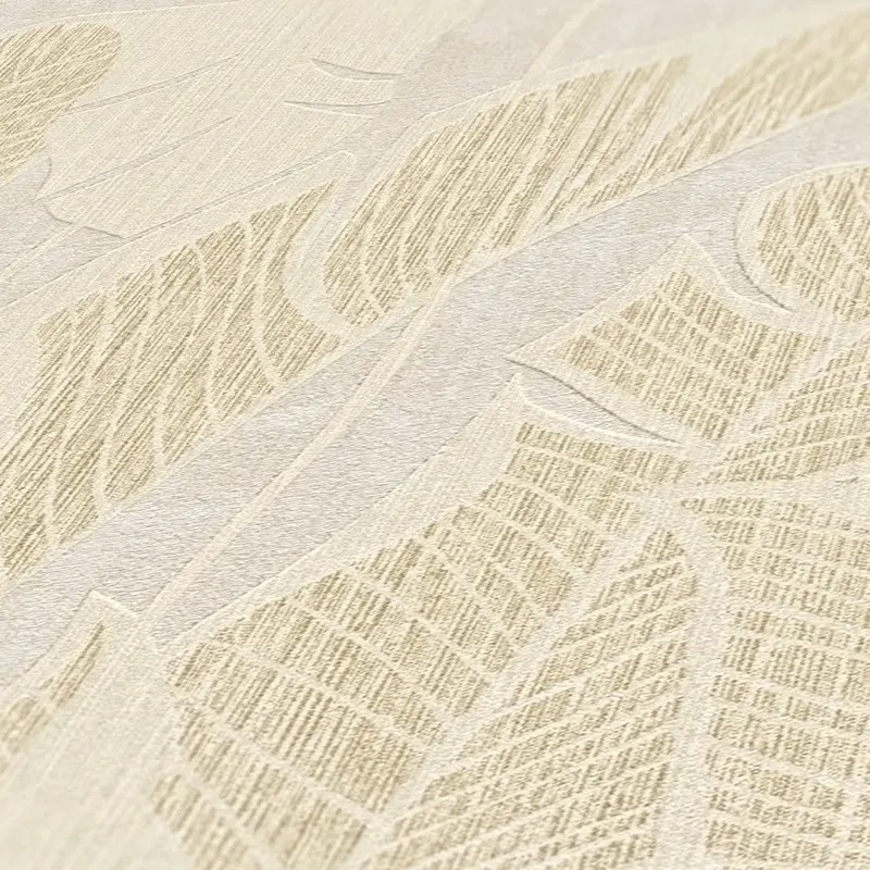 Papel pintado hojas bananero beige, negro, dorado, Una solución elegante para renovar tus paredes con estilo. As Creation Jade 395024.