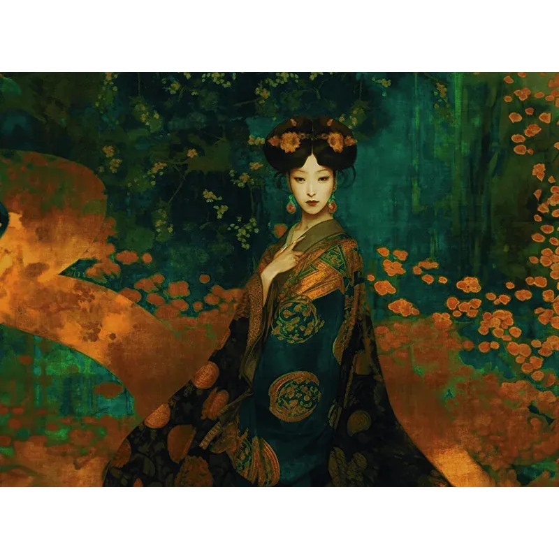 Mural de pared compuesto por 7 paneles con una medida todal de 371 cm ancho x 280 cm alto. Fabricado por AS Creation, colección Jade