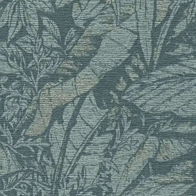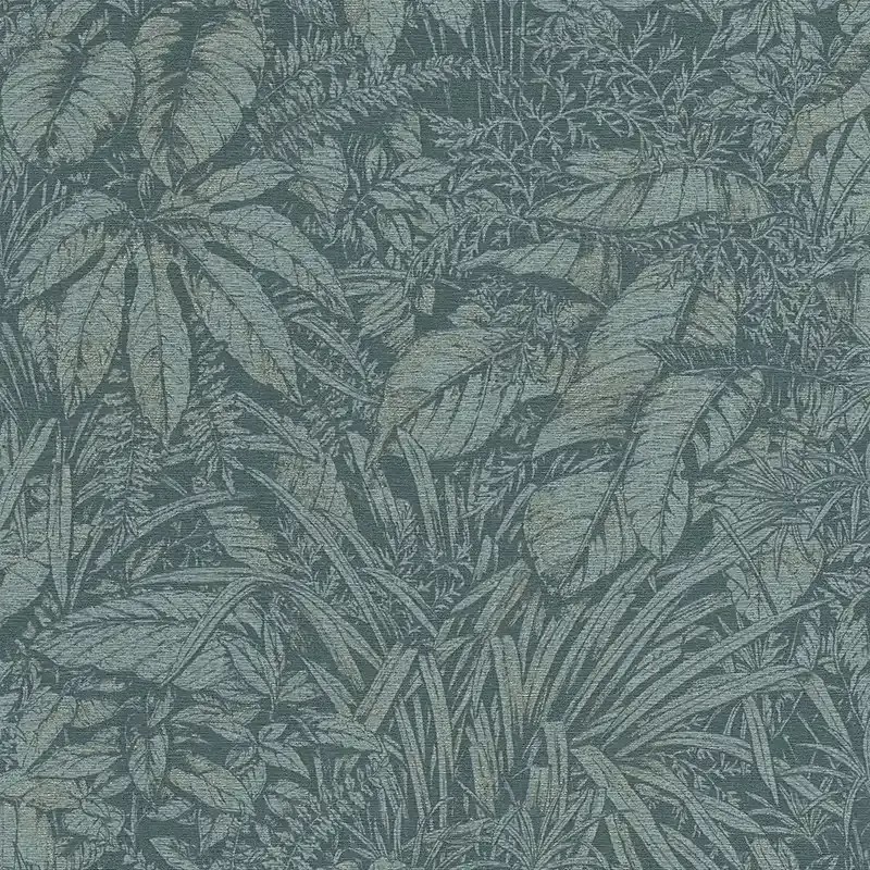 Papel pintado plantas selváticas azul petróleo, verde