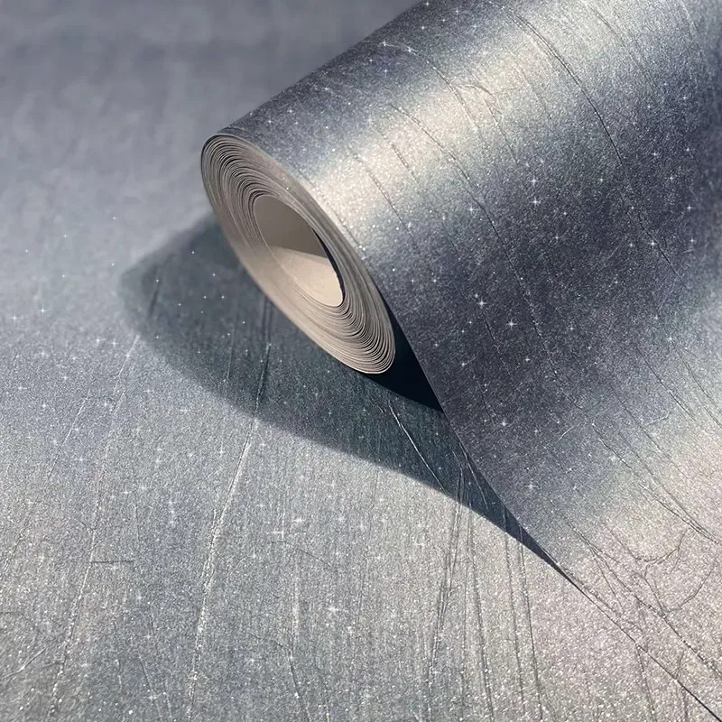 Un estilo que destaca en cualquier estancia, papel pintado arrugado moderno plateado, gama alta Marburg Crush Motion 63416.