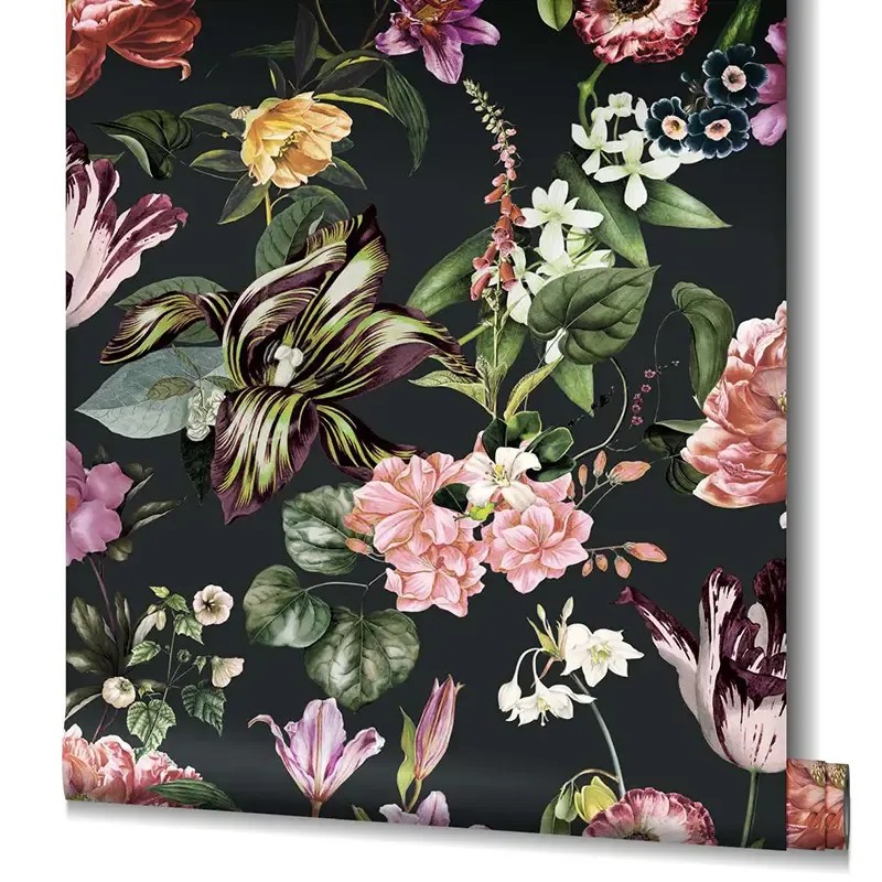 Papel pintado floral enredadera verde y rosa, ideal para destacar tus paredes. Marburg Flora 47459.
