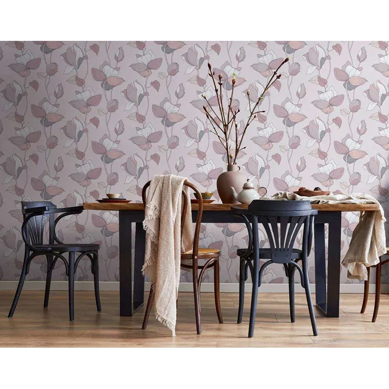 Una opción decorativa con gran carácter es papel pintado plantas trepadoras blanco, beige y verde Marburg Flora 47472.