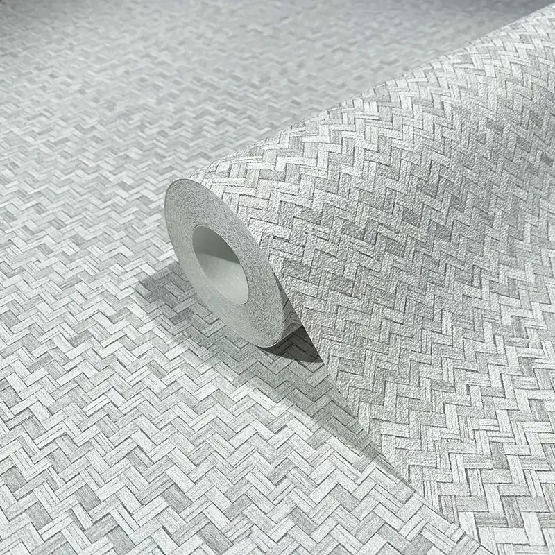 Papel pintado japandi mimbre trenzado gris de Marburg, colección Flora, calidad tejido no tejido lavable. Medidas: 53 cm x 10 metros