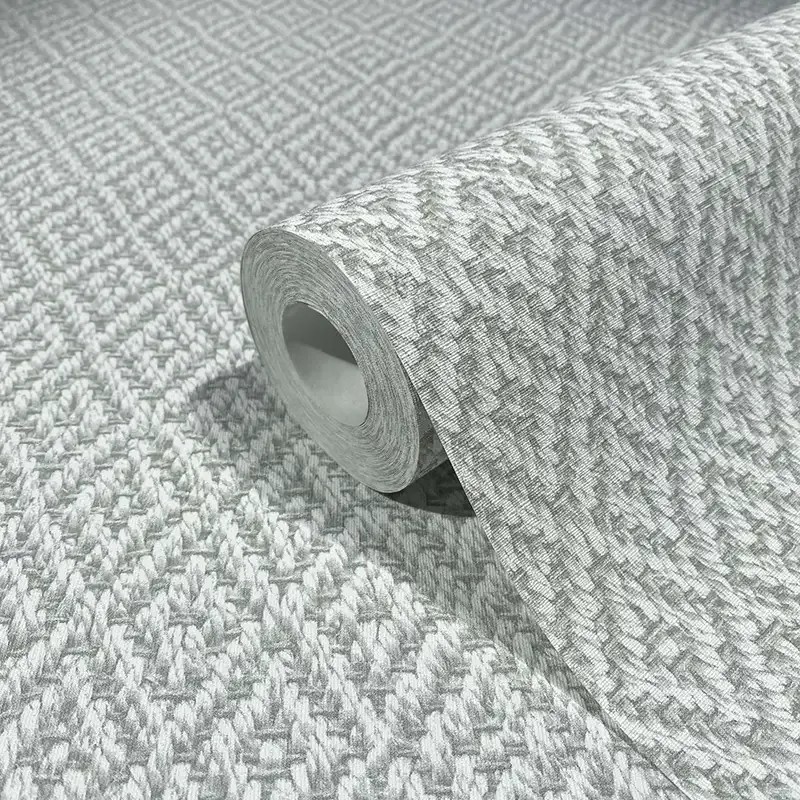 Papel pintado japandi crochet textil gris de Marburg, colección Flora, calidad tejido no tejido lavable. Medidas: 53 cm x 10 metros