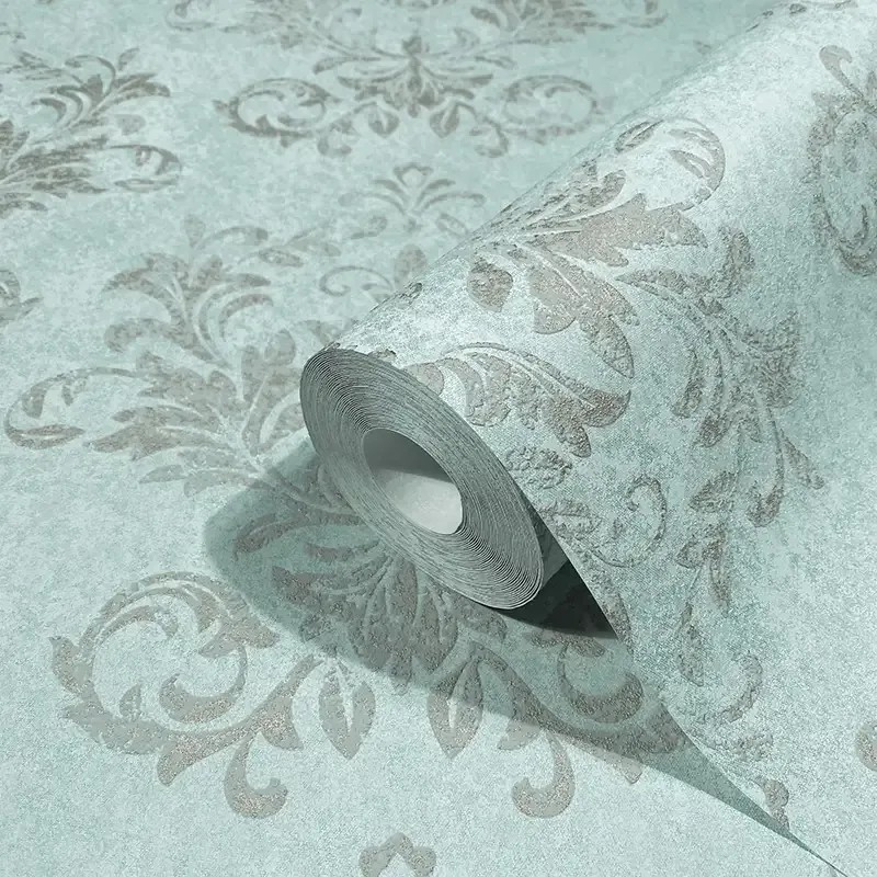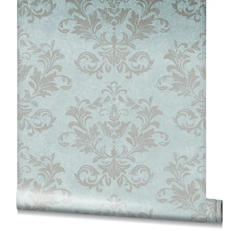 Papel pintado damasco gris verde
