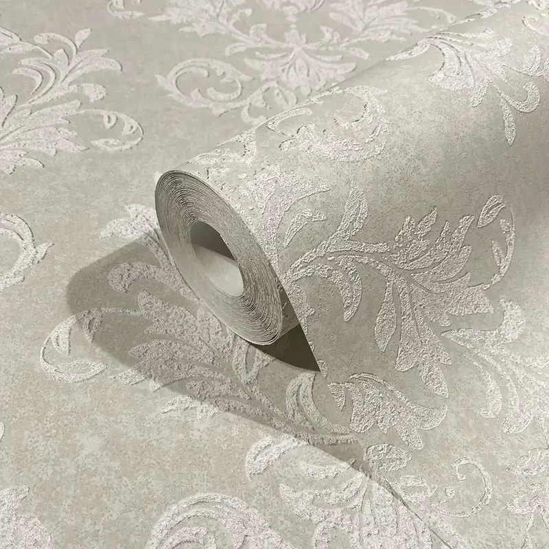 Papel pintado damasco barroco gris de Marburg, colección Habitat, calidad tejido no tejido lavable. Medidas: 53 cm x 10 metros