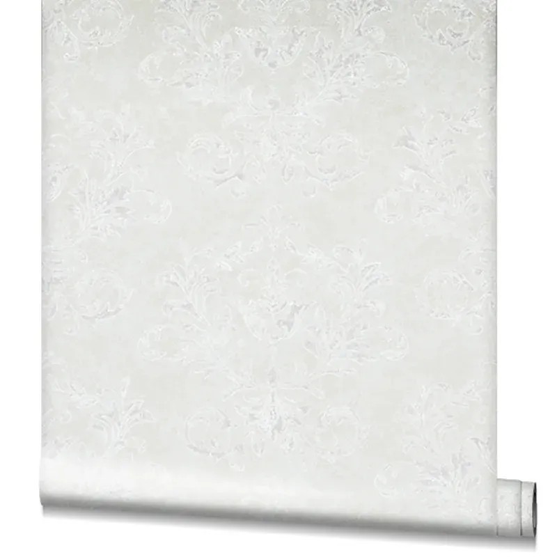 Papel pintado damasco blanco ornamentos barrocos de Marburg, colección Habitat, calidad tejido no tejido lavable. Medidas: 53 cm x 10 metros