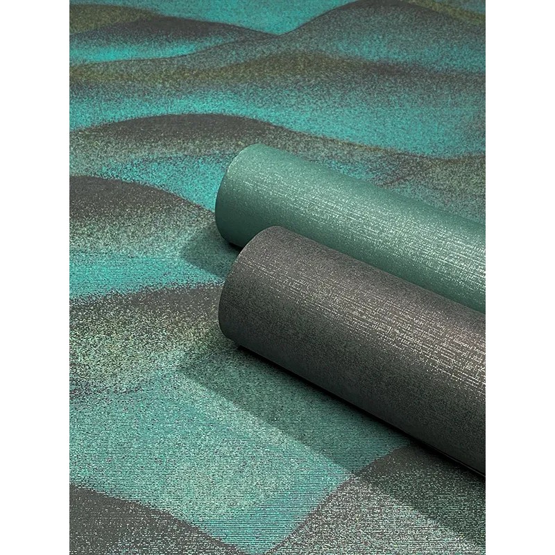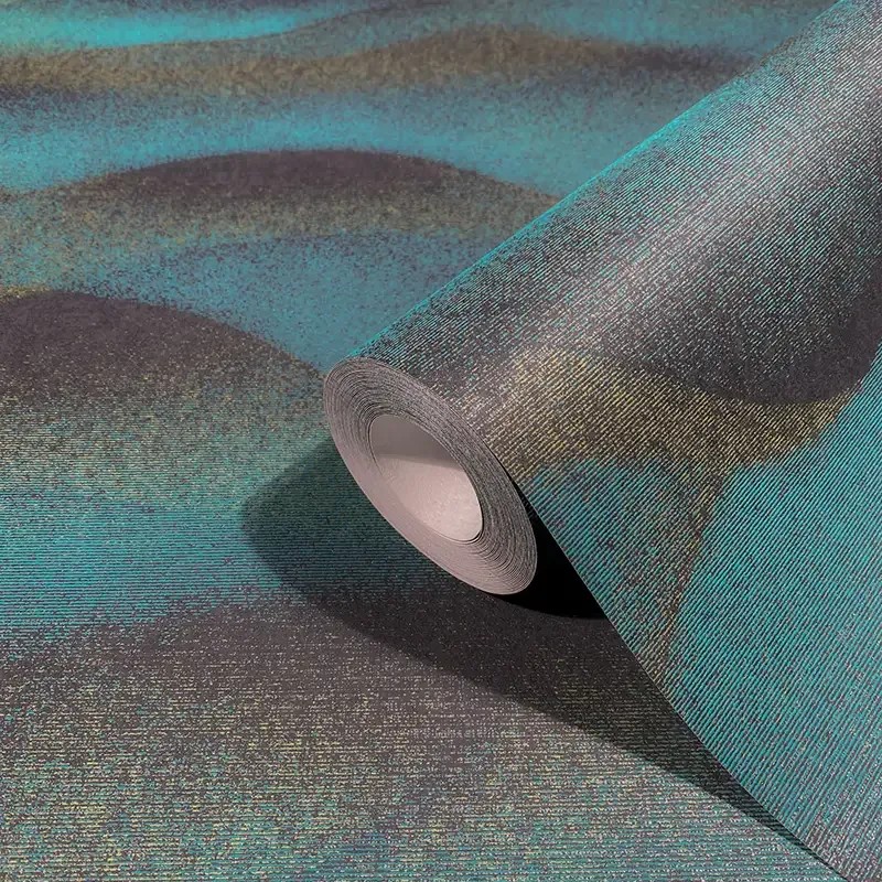 Papel pintado estilo oriental colinas asiáticas turquesa, con textura y diseño diferenciador. Marburg Habitat 34018.