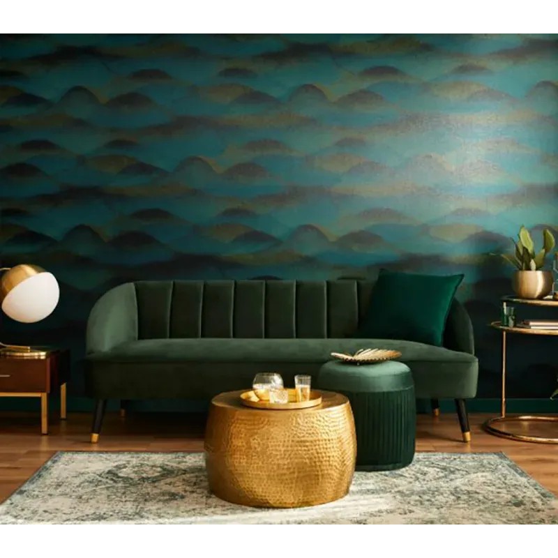 Papel pintado estilo oriental colinas asiáticas turquesa