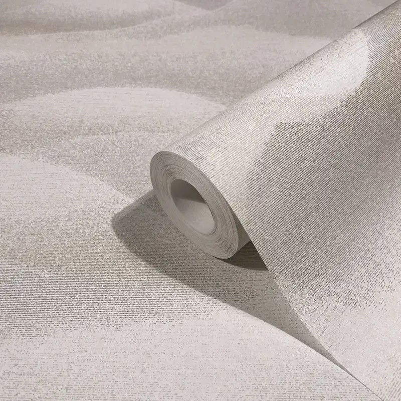 Papel pintado oriental paisaje japonés beige plateado de Marburg, colección Habitat, calidad tejido no tejido lavable. Medidas: 53 cm x 10 metros
