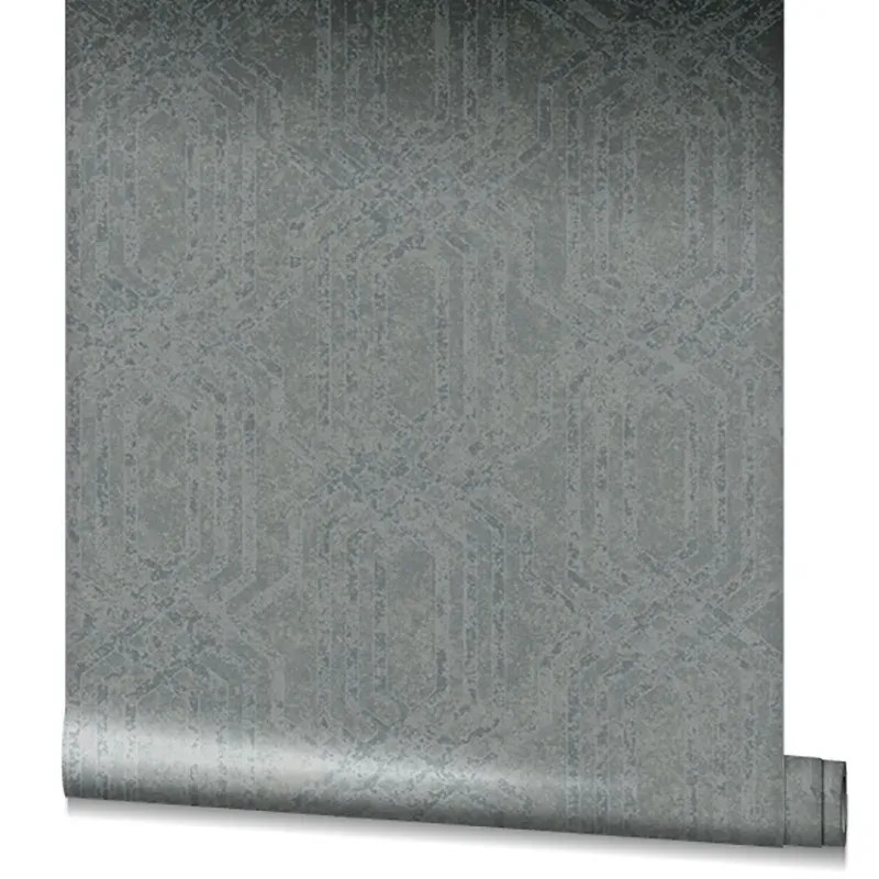 Papel pintado geométrico verde patrón enrejado, una elección con mucha presencia. Marburg Habitat 34039.