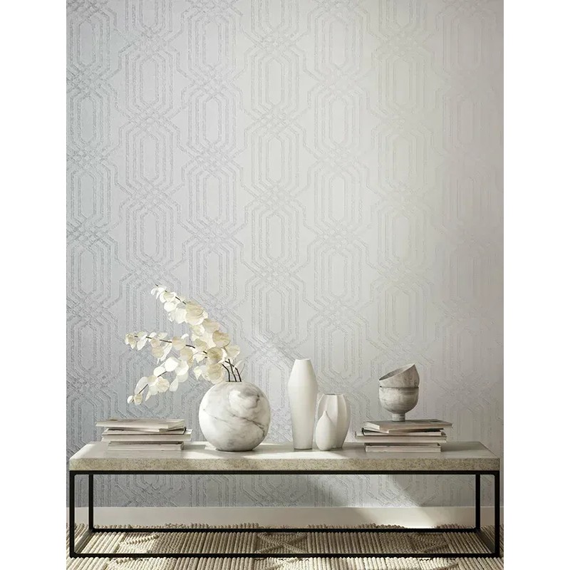 Papel pintado contemporáneo enrejado geométrico gris de Marburg, colección Habitat, calidad tejido no tejido lavable. Medidas: 53 cm x 10 metros