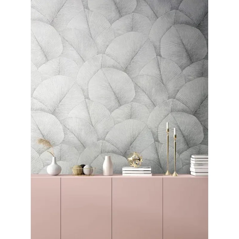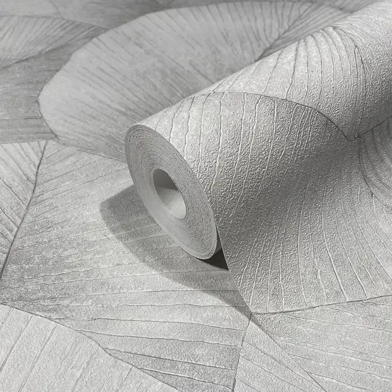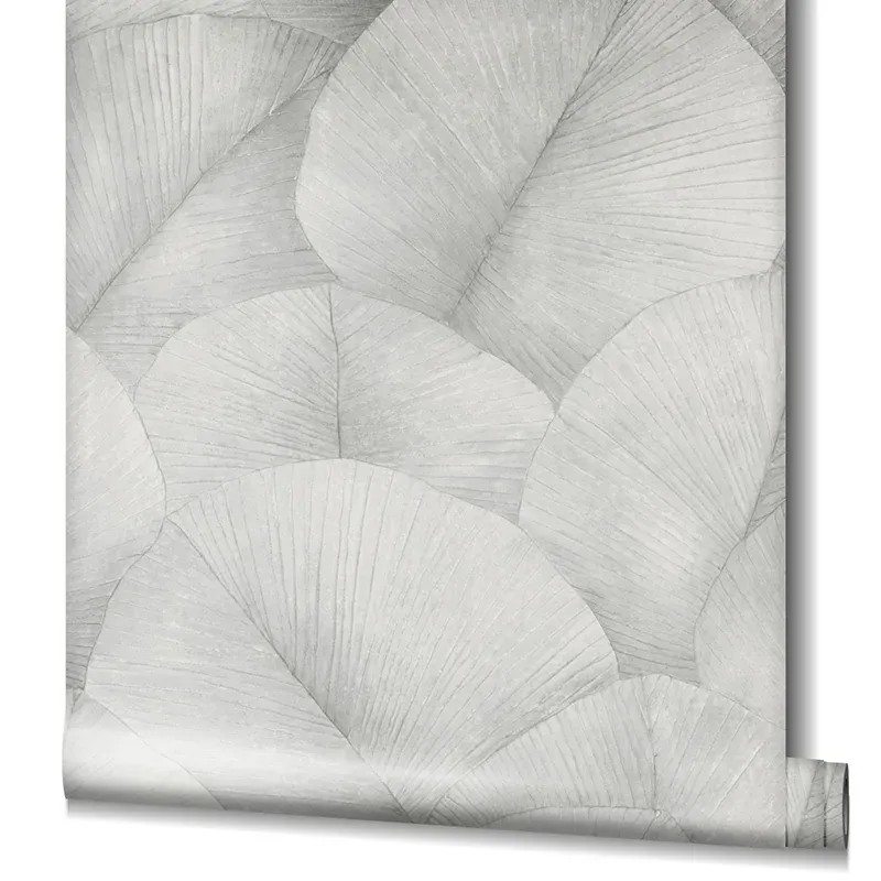 Inspiración contemporánea para tu hogar, papel pintado floral gris hojas grandes 3D Marburg Kumano 34508.