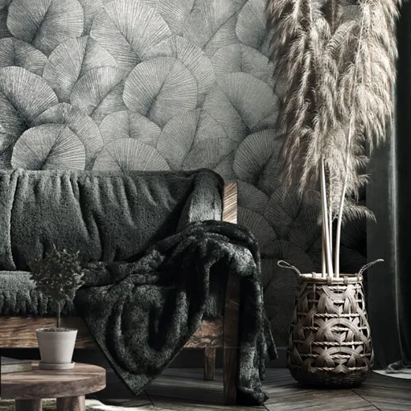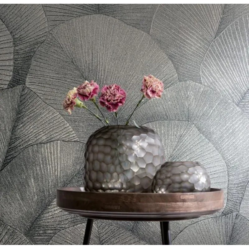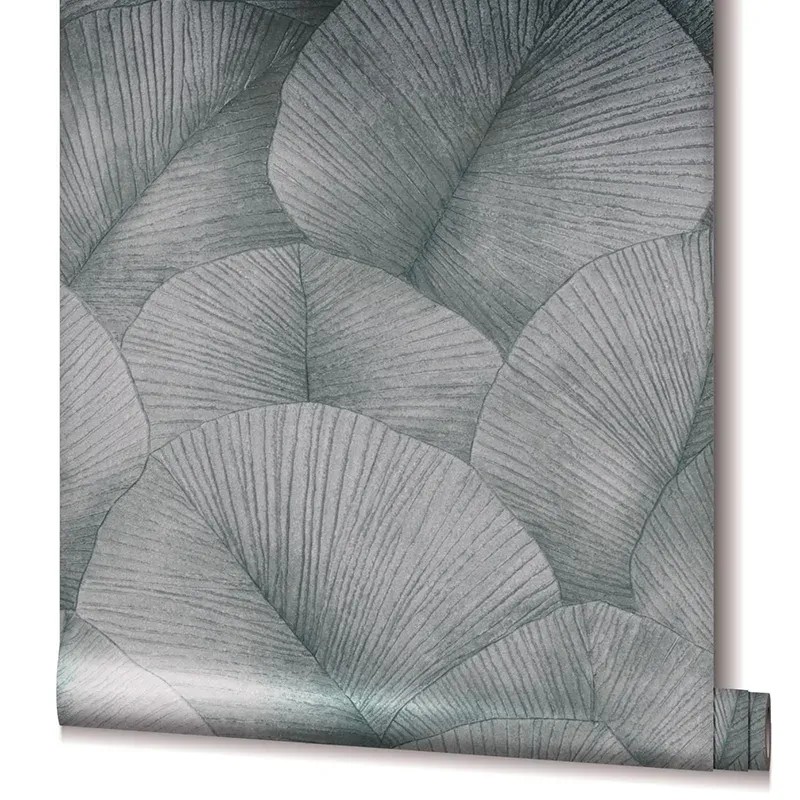 Inspiración contemporánea para tu hogar, papel pintado floral gris hojas grandes 3D Marburg Kumano 34508.