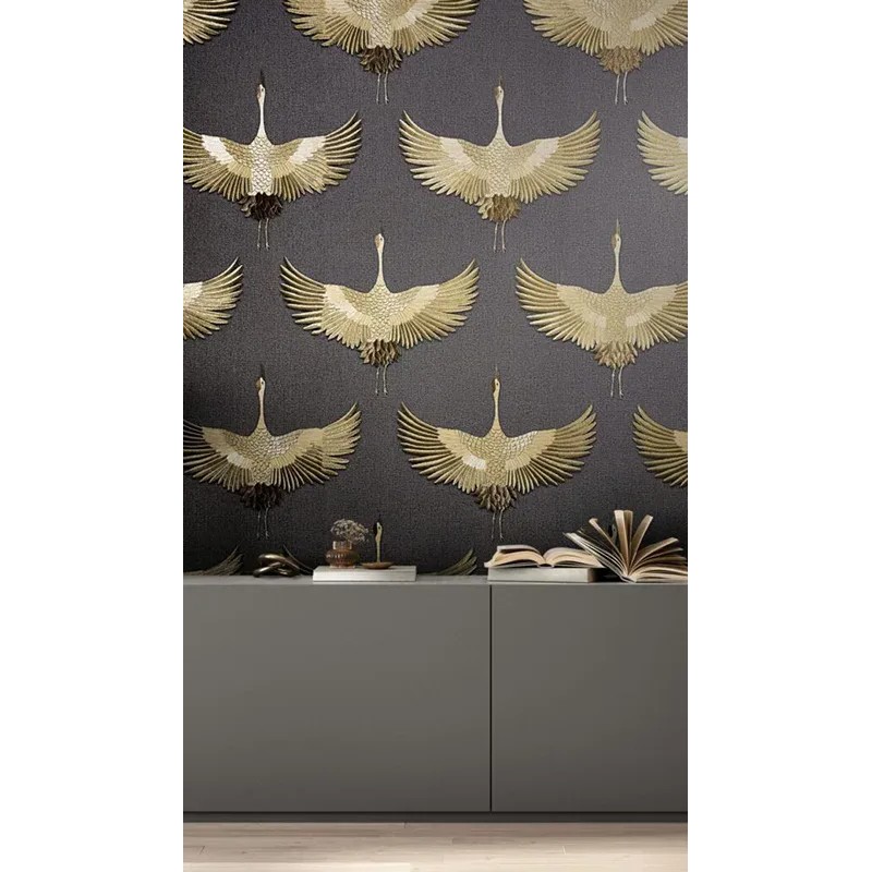 Papel pintado grullas contemporáneo gris de Marburg, colección Kumano, calidad tejido no tejido lavable. Medidas: 53 cm x 10 metros