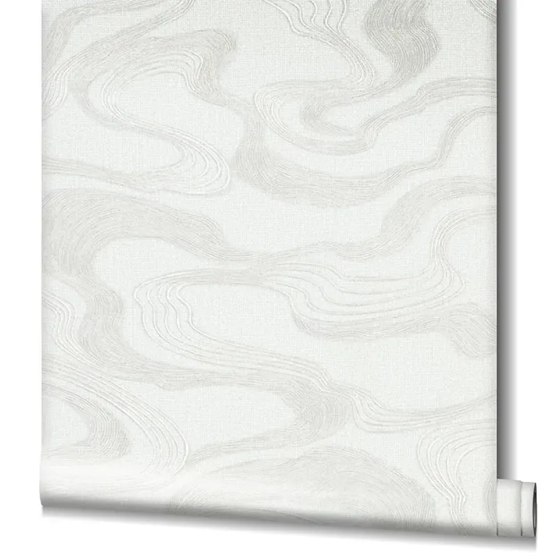 Papel pintado moderno gris plata abstracto de Marburg, colección Kumano, calidad tejido no tejido lavable. Medidas: 53 cm x 10 metros