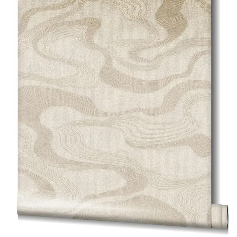 Papel pintado moderno beige champán ondas abstractas de Marburg, colección Kumano, calidad tejido no tejido lavable. Medidas: 53 cm x 10 metros