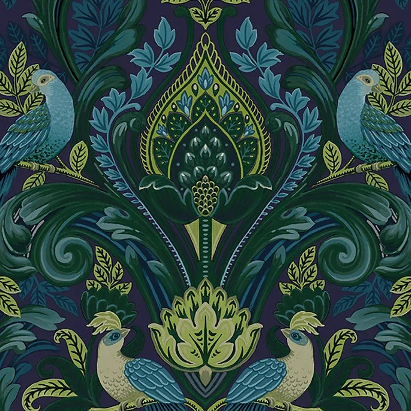Papel pintado floral romántico ornamental azul. Hazlo destacar con diseño ideal para el recibidor. Ideal para quienes buscan calidez y estilo.