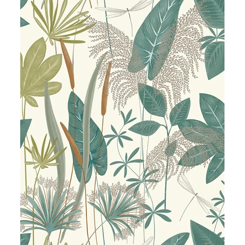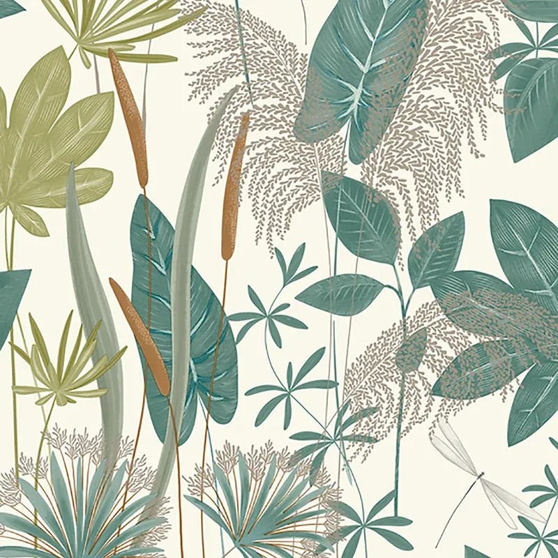 Papel pintado floral hojas silvestres verde. Crea un ambiente acogedor ideal para tu rincón de lectura. Ideal para quienes buscan calidez y estilo.