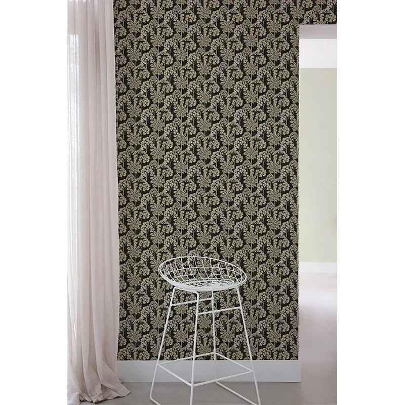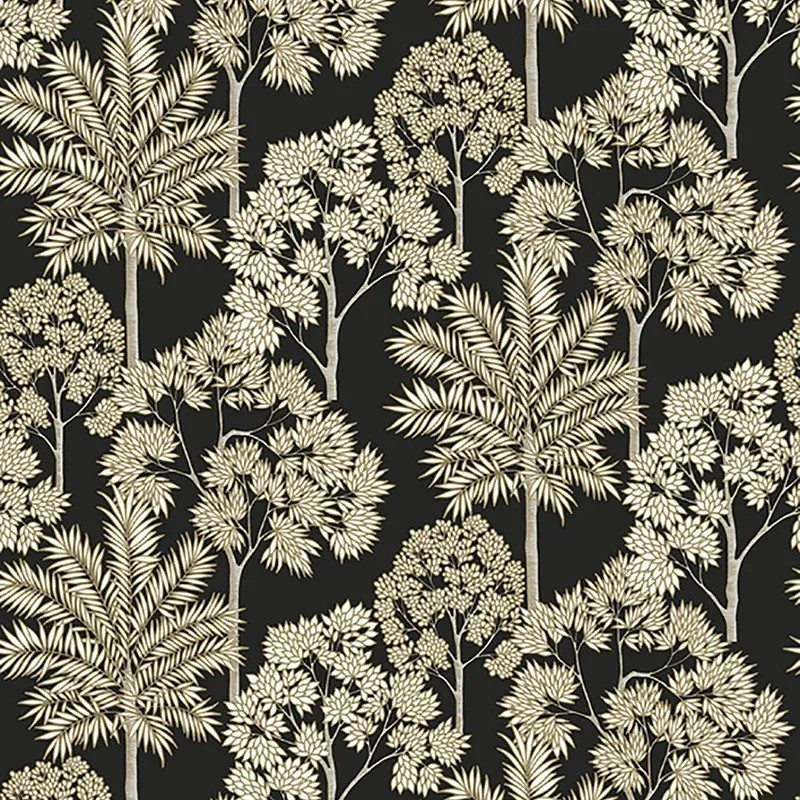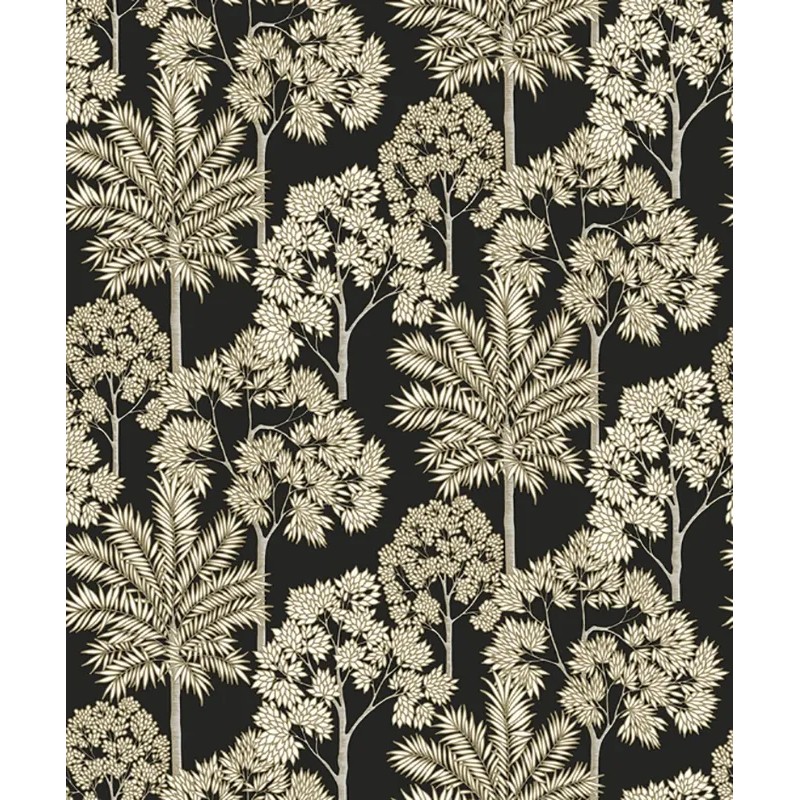 Papel pintado atemporal bosque palmeras blanco. Aporta un toque único en tu oficina en casa. Ideal para quienes buscan calidez y estilo.