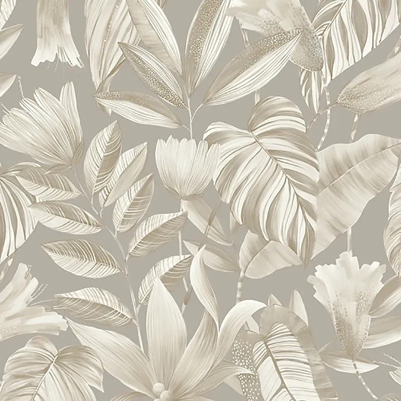 Papel pintado floral hojas tropicales negro y marrón. Hazlo destacar con diseño para habitaciones con estilo. Ideal para quienes buscan calidez y estilo.
