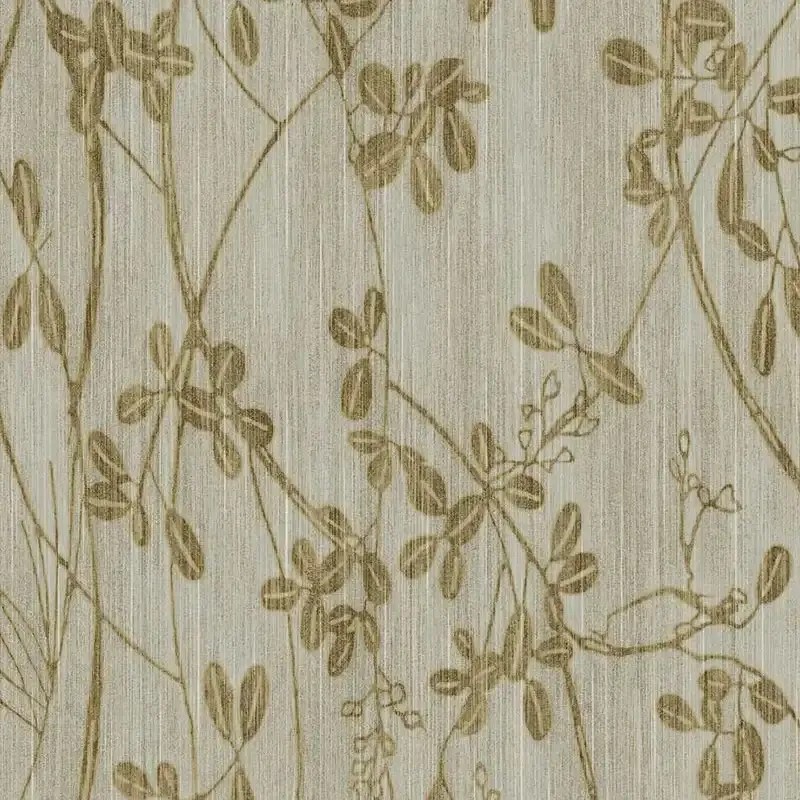 Papel pintado ramas silueteadas verde rústico de Eijffinger, colección Emerald. Medidas: 70 cm x 10 m. Papel de pared tejido no tejido y lavable.