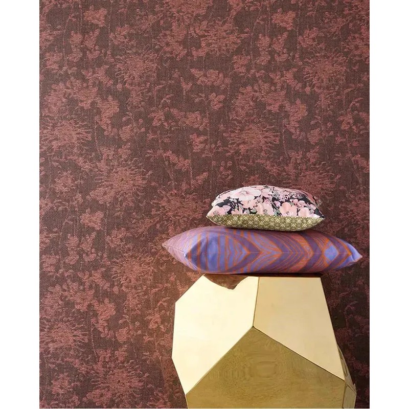 Papel pintado ramas tropicales rojo rústico de Eijffinger, colección Emerald. Medidas: 70 cm x 10 m. Papel de pared tejido no tejido y lavable.