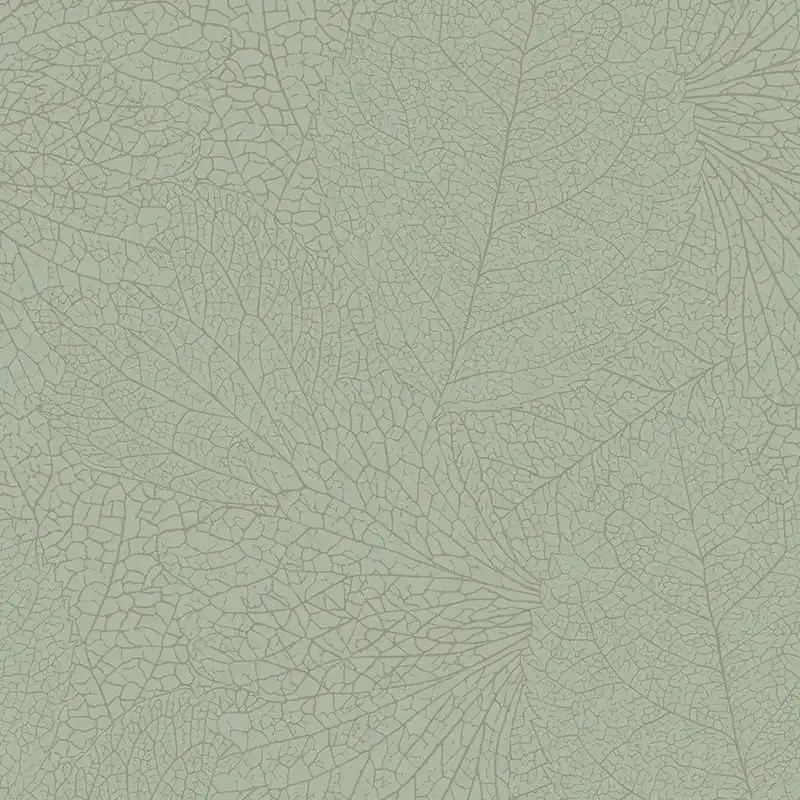 Papel pintado nervios foliares verde claro brillante escandinavo de Eijffinger, colección Embrace. Medidas: 52 cm x 10 m. Papel de pared tejido no tejido y lavable.
