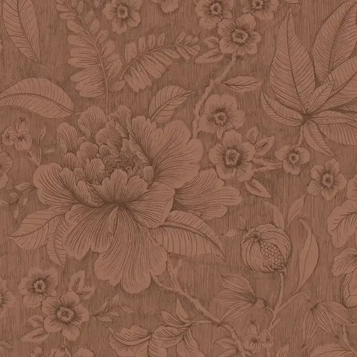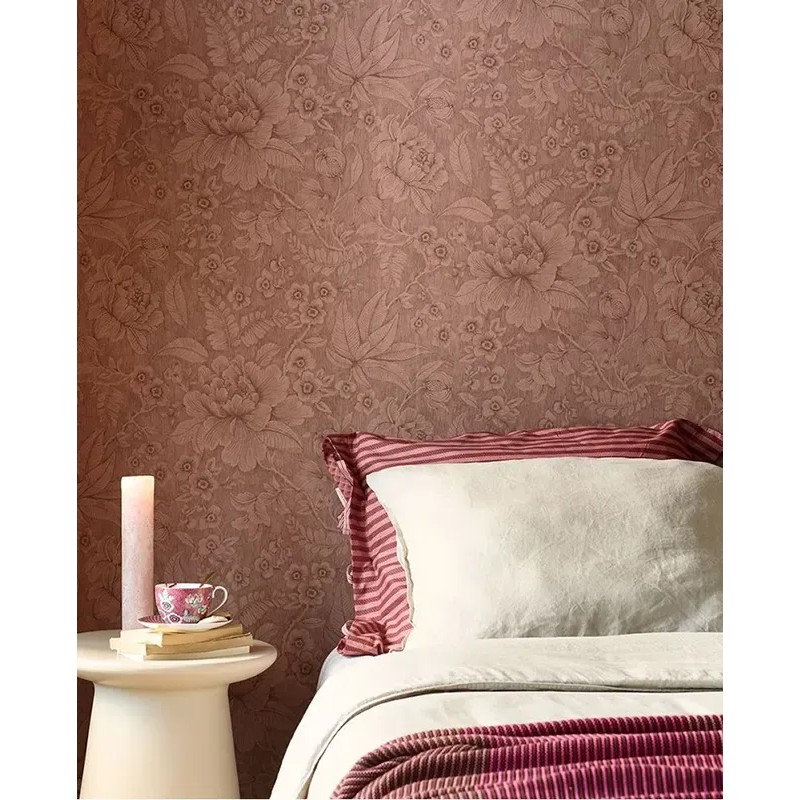 Papel pintado con flores grandes en color terracota, un diseño cálido que aporta carácter a cualquier estancia. Pip Studio de Eijffinger, papel de pared calidad tejido no tejido lavable. Medidas: 52 cm x 10 metros