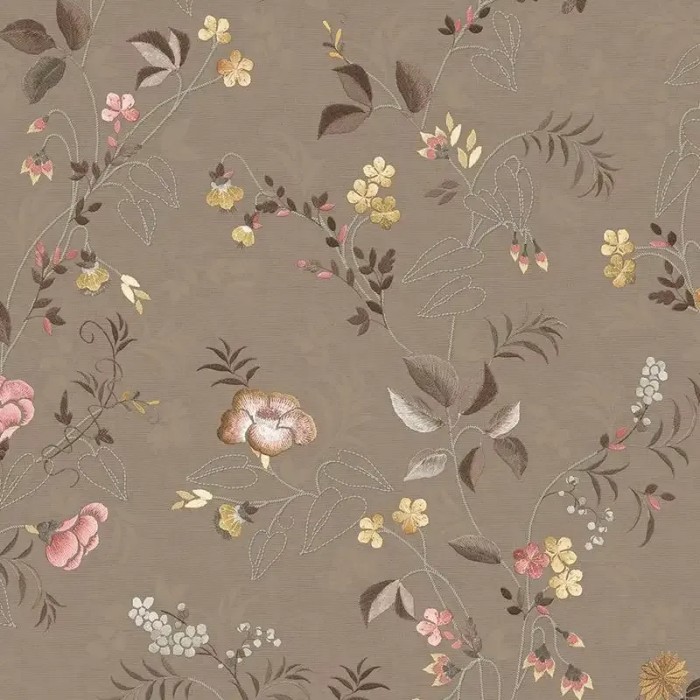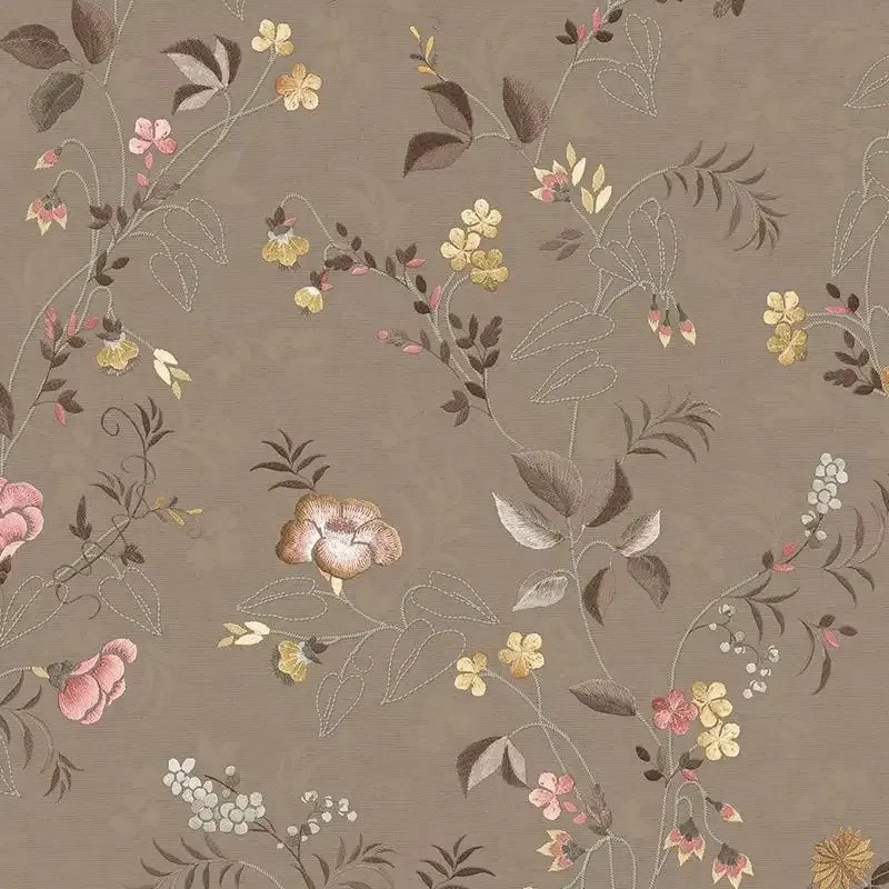Papel pintado romántico con pequeñas flores japonesas en beige grisáceo, ideal para un ambiente delicado y sereno. Pip Studio de Eijffinger, papel de pared calidad tejido no tejido lavable. Medidas: 52 cm x 10 metros