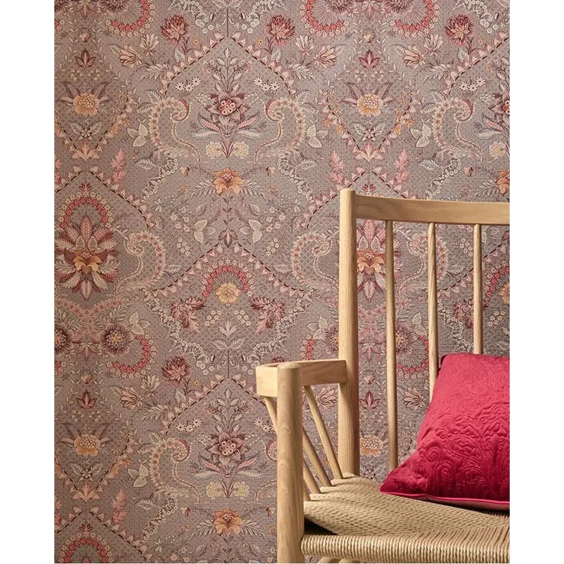Papel pintado romántico floral estilo damasco en verde, un diseño tradicional que transmite frescura y encanto. Pip Studio de Eijffinger, papel de pared calidad tejido no tejido lavable. Medidas: 53 cm x 10 metros