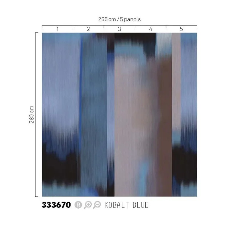 Mural pared moderno composición abstracta azul dorado de Eijffinger, colección Revive. Medidas: 195 x 280 cm.