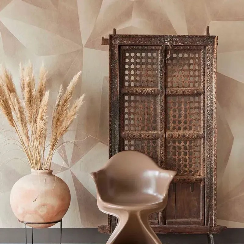 Mural pared abstracto 3D forma de diamante de Eijffinger, colección Gilded. Medidas: 400 x 280 cm.