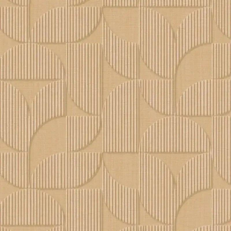 Papel pintado geométrico formas redondeadas beige escandinavo de Eijffinger, colección Revive. Medidas: 52 cm x 10 m. Papel de pared tejido no tejido y lavable.