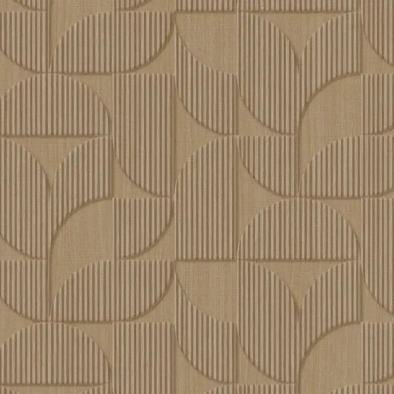 Papel pintado geométrico formas redondeadas beige escandinavo de Eijffinger, colección Revive. Medidas: 52 cm x 10 m. Papel de pared tejido no tejido y lavable.