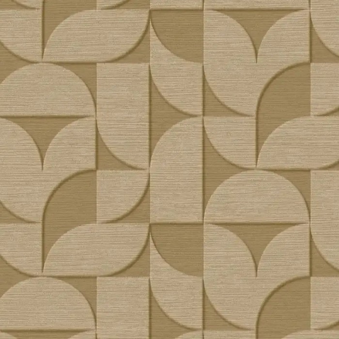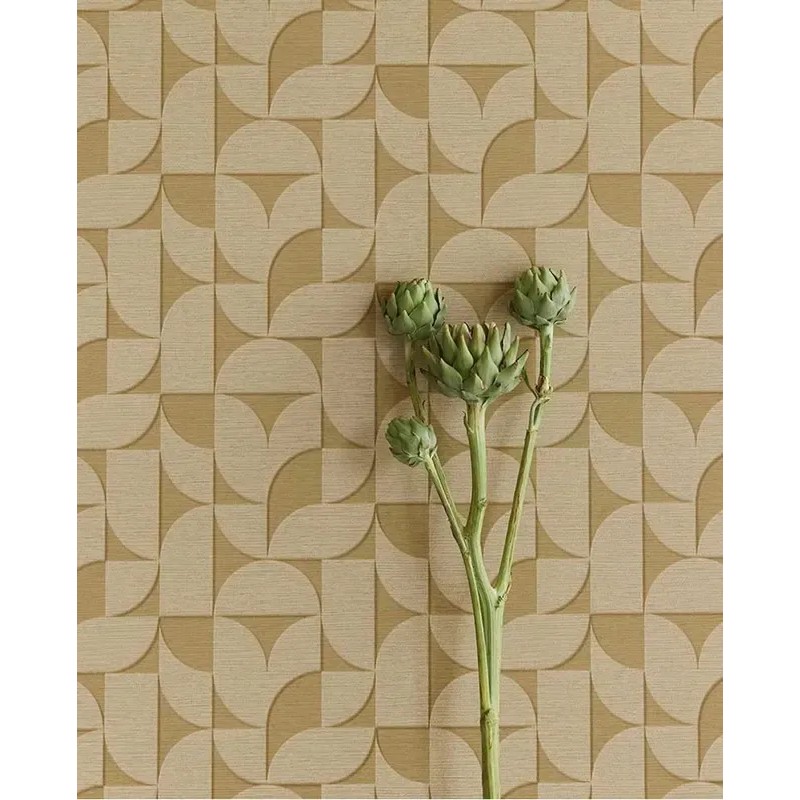 Papel pintado geométrico formas redondeadas verde mostaza escandinavo de Eijffinger, colección Revive. Medidas: 52 cm x 10 m. Papel de pared tejido no tejido y lavable.