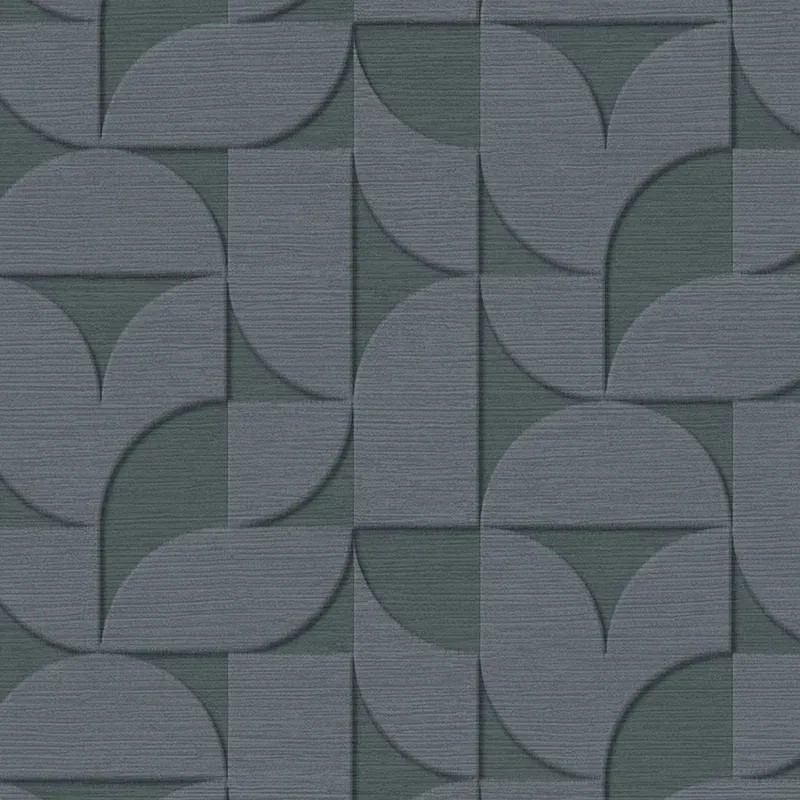 Papel pintado geométrico formas redondeadas verde mostaza escandinavo de Eijffinger, colección Revive. Medidas: 52 cm x 10 m. Papel de pared tejido no tejido y lavable.