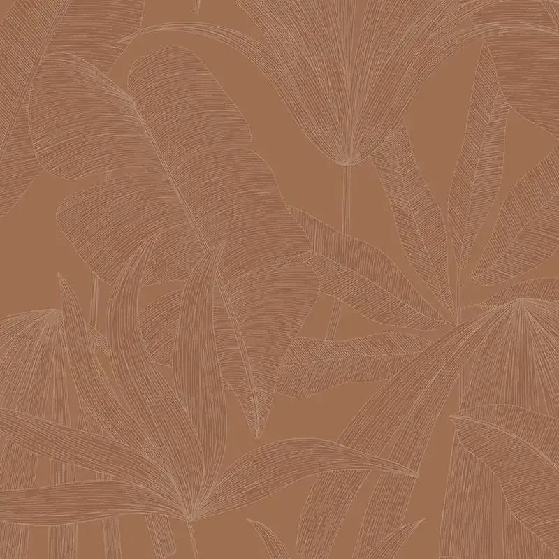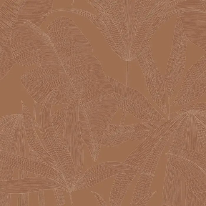 Papel pintado plantas tropicales ocre romántico de Eijffinger, colección Festival. Medidas: 68 cm x 10 m. Papel de pared tejido no tejido y lavable.