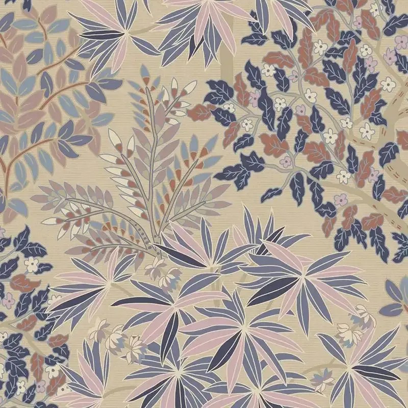 Papel pintado árboles encantados rosa marrón escandinavo boho de Eijffinger, colección Festival. Medidas: 52 cm x 10 m. Papel de pared tejido no tejido y lavable.