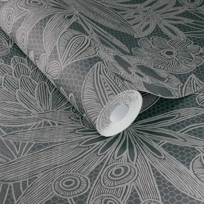 Papel pintado encaje floral violeta marrón romántico de Eijffinger, colección Gilded. Medidas: 69 cm x 10 m. Papel de pared tejido no tejido y lavable.