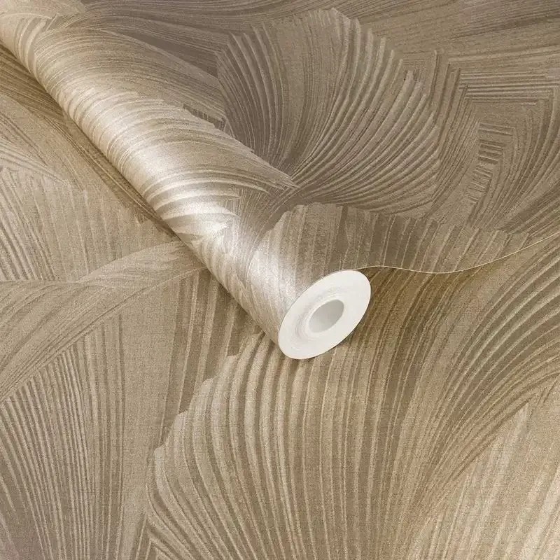 Papel pintado hojas de palma beige jungle chic de Eijffinger, colección Gilded. Medidas: 52 cm x 10 m. Papel de pared tejido no tejido y lavable.