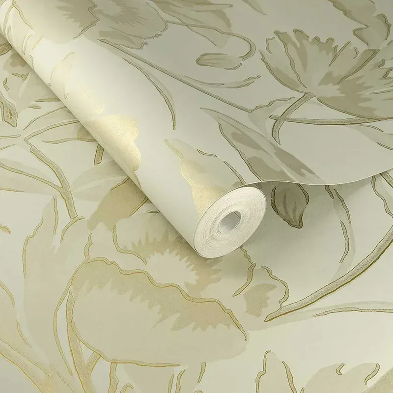 Papel pintado siluetas de flores verde dorado romántico