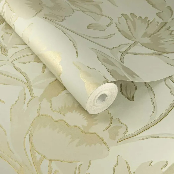 Papel pintado siluetas de flores blanco dorado romántico de Eijffinger, colección Gilded. Medidas: 52 cm x 10 m. Papel de pared tejido no tejido y lavable.