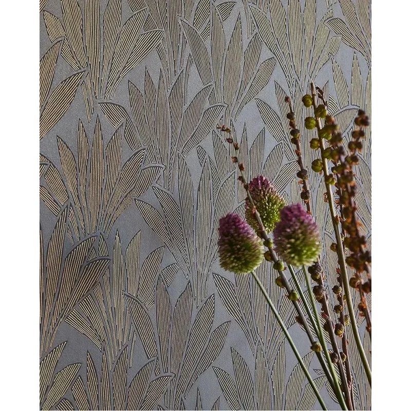 Papel pintado hojas minimalistas negro dorado metalizado moderno de Eijffinger, colección Gilded. Medidas: 52 cm x 10 m. Papel de pared tejido no tejido y lavable.
