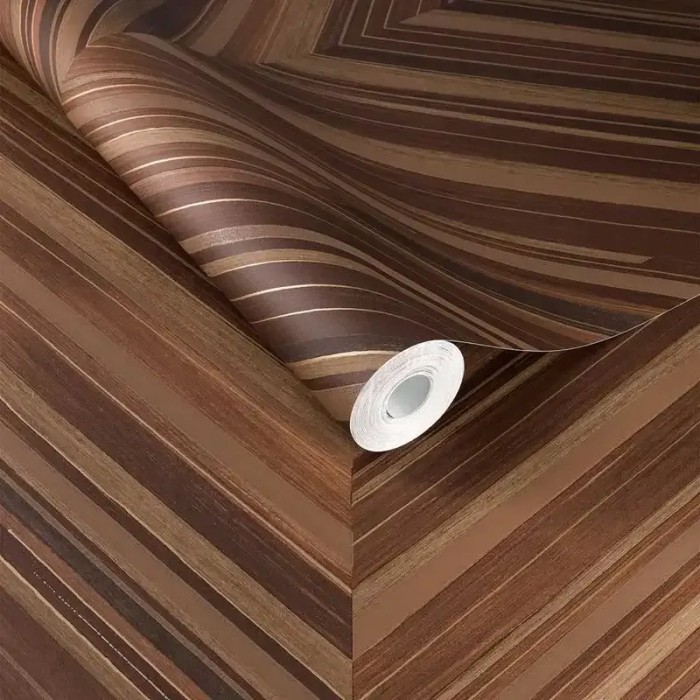 Papel pintado madera espiga marrón cobre brillante moderno de Eijffinger, colección Gilded. Medidas: 52 cm x 10 m. Papel de pared tejido no tejido y lavable.