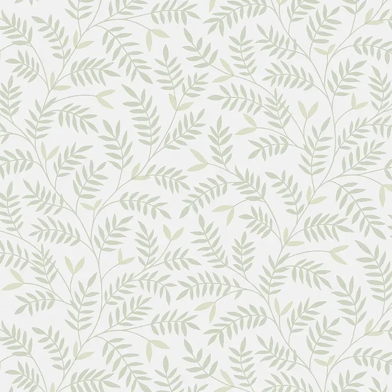 Papel pintado escandinavo hojas pequeñas verde y blanco
