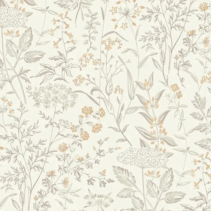 Wallpaper vintage style meadow flowers floral in beige by Borastapeter, Borosan Hem collection. Washable and Non-woven quality, size: 53 cm x 11,2 m.