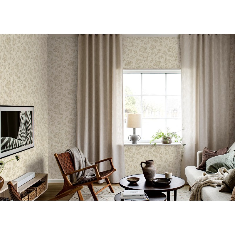 Cree una atmósfera serena y lujosa con nuestro papel pintado Cornelia en cálidos tonos beige. Con un sutil patrón floral en bucle sobre un suave fondo moteado, es la elección perfecta tanto para interiores modernos como tradicionales. Coloca este papel pintado en tu salón, comedor o cocina para transformar tus paredes con un estilo atemporal y hermoso.
