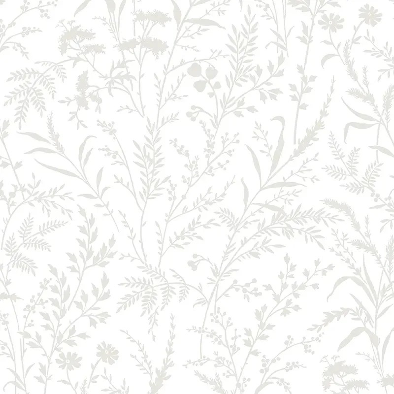 Papel pintado romántico diseño floral años 30 en blanco y multicolor de Borastapeter, colección Borosan Hem. Calidad tejido no-tejido lavable, medidas: 53 cm x 11,2 m.
