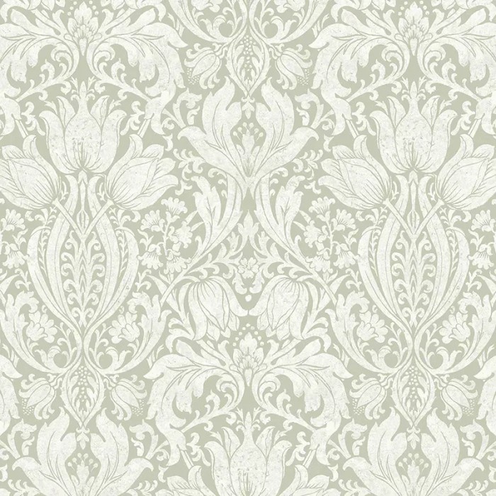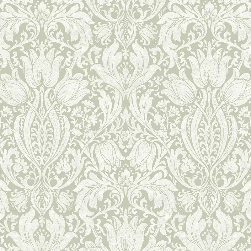 Papel pintado floral ornamental tulipanes y lirios en gris de Borastapeter, colección Borosan Hem. Calidad tejido no-tejido lavable, medidas: 53 cm x 11,2 m.